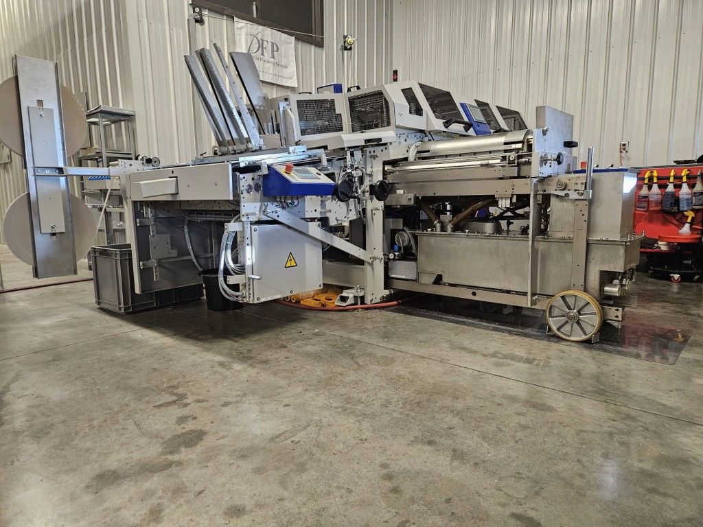 For fully automatic production of book cases, files, display cards, calendar backs or game boards.