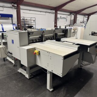 For cutting board sheets into finished cut-to-size blanks in 2 operating processes.