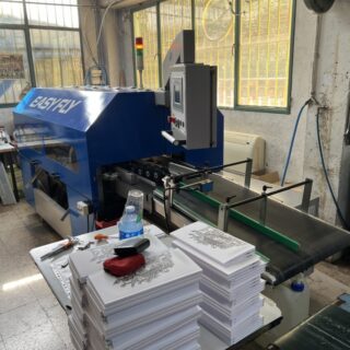 Can be positioned before or after the three knife trimmer in book production lines.